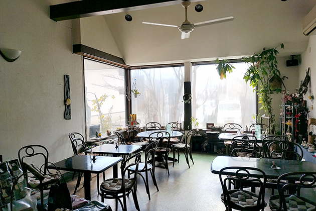 大きな窓の店内で