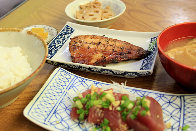 さば焼魚定食は刺身や煮物の小鉢まで付いて