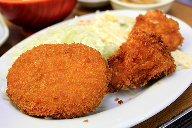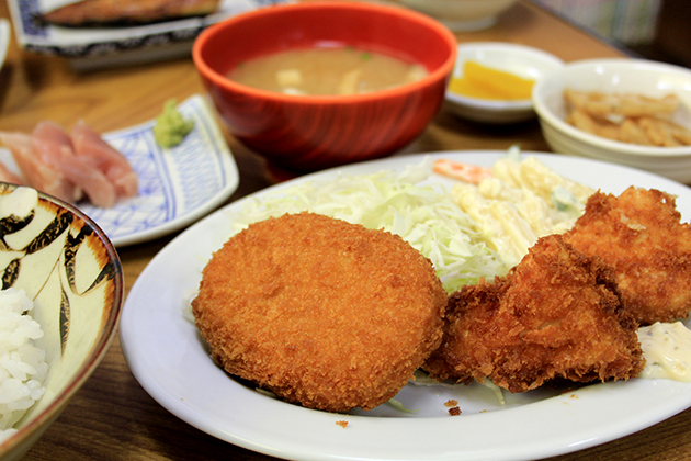 こちらはチキンカツ・コロッケミックス定食(950円)で…