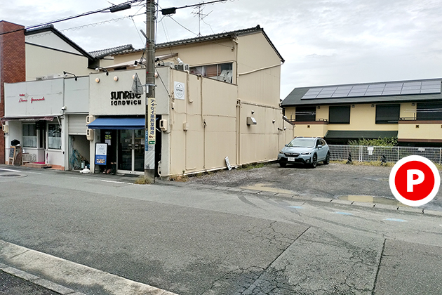 お店の駐車場は建物の少し西側に1台と…